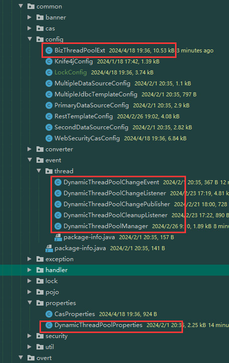 这里我是存储在配置文件中,项目启动的时候使用 事件的监听器 、 bean定义注册器 ,读取配置文件中所有线程配置动态注册