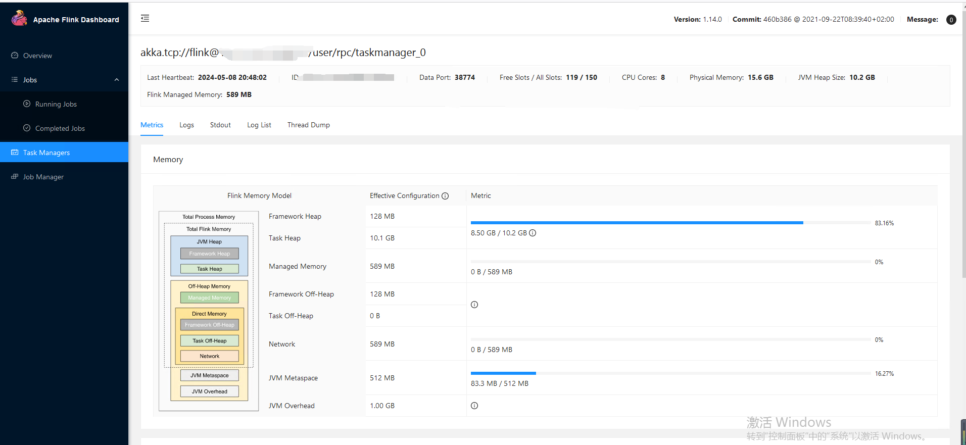 # To exclude JVM metaspace and overhead, please, use total Flink memory size instead of 'taskmanager.memory.process.size'.# It is not recommended to set both 'taskmanager.memory.process.size' and Flink memory.## taskmanager.memory.flink.size: 1280m#JVM 元空间taskmanager.memory.jvm-metaspace.size: 512m