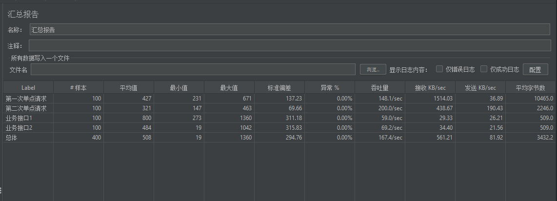 - 汇总报告:请求接口的总体情况等,下面提供详细指标的说明。