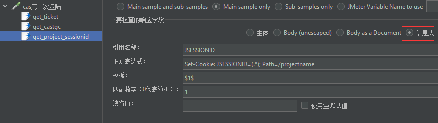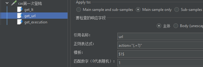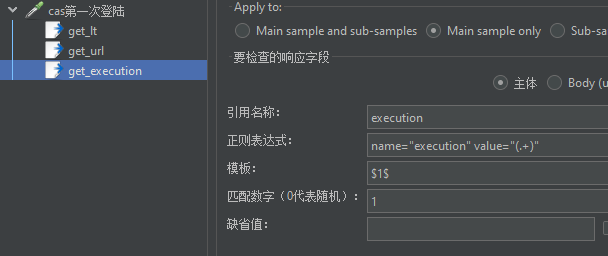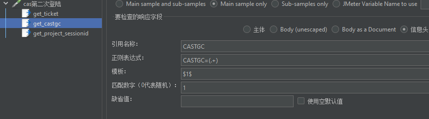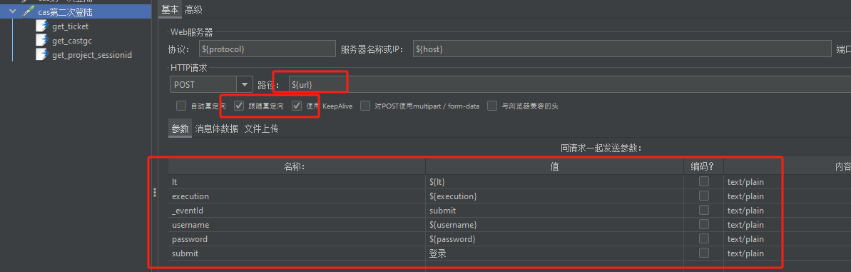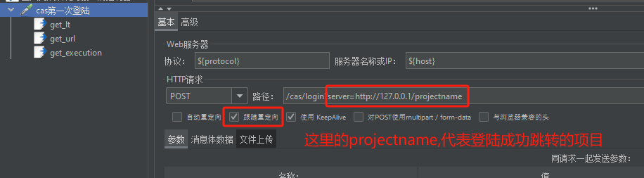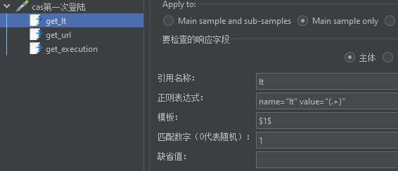 接着添加 cas 登陆校验的接口取样器,进行第一次 cas 登陆的处理