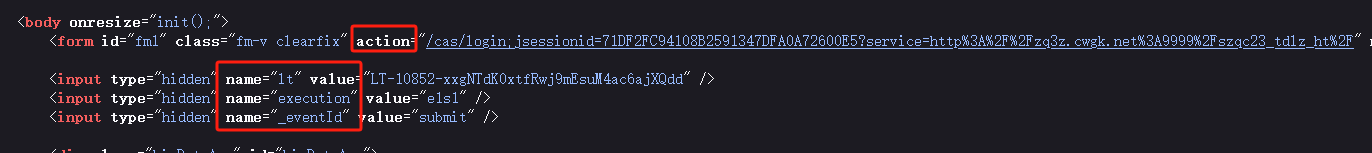 下面是在 cas 登陆页面源代码中的元素内容: