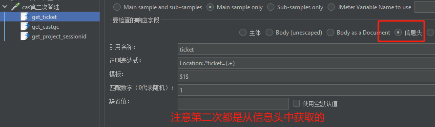 - 登陆成功后可以去访问 A 项目,通过正则表达式提取器获取 A 项目认证成功的 sessionid,并保存到变量中。